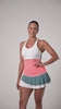Su sujetador incorporado ofrece mayor sujeción y seguridad, eliminando la necesidad de prendas adicionales y asegurando máxima comodidad en cada movimiento. El tejido técnico, ligero y transpirable, mantiene la piel seca incluso en los momentos de mayor intensidad. Una camiseta versátil y moderna, ideal para deportes de raqueta como pádel, tenis y pickleball.